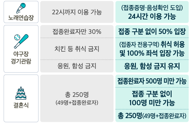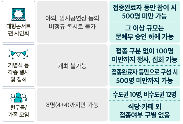 대규모 행사와 집회는 접종 완료자를 중심으로 허용됩니다.