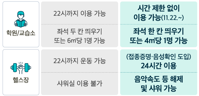 단, 코로나19 완치자이거나 18살 이하, 의학적 사유로 백신을 맞을 수 없는 사람은 예외에 해당돼 백신 미접종이어도 시설 이용은 가능합니다.