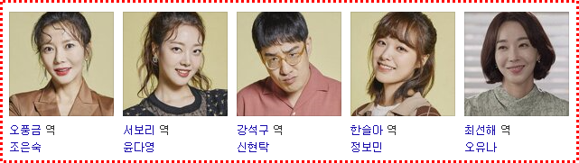 조은숙(오풍금 역) / 윤다영(서보리 역 ) / 신현탁(강석구 역) / 정보민(한슬아 역) / 오유나(최선해 역)