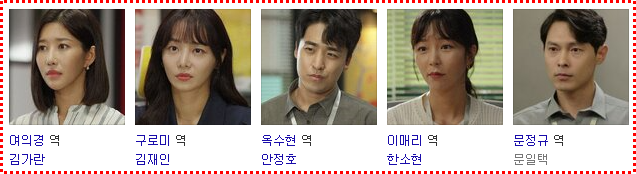 김가란(여의경 역) / 김재인(구로미 역) / 안정호(옥수현 역) / 한소현(이매리 역) / 문일택(문정규 역)