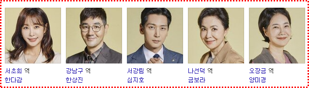 한다감(서초희 역) / 한상진(강남구 역) / 심지호(서강림 역) / 금보라(나선덕 역) / 양미경(오장금 역)