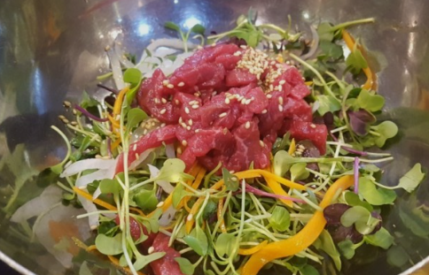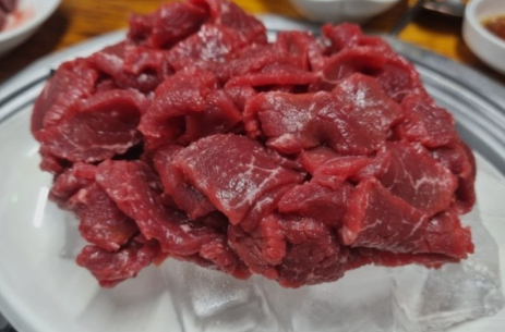 생삼겹살(500g) : 33,000원 특수부위(500g) : 90,000원 안창살(400g) : 110,000원 토시살(400g) : 110,000원 등심(500g) : 80,000원 육회비빔밥 : 8,000원 철판제육볶음 : 7,000원 살치살(400g) : 110,000원 차돌박이(500g) : 60,000원 육사시미(400g) : 50,000원 육회(400g) : 45,000원 고기듬뿍 김치찌개 6,000원 |
