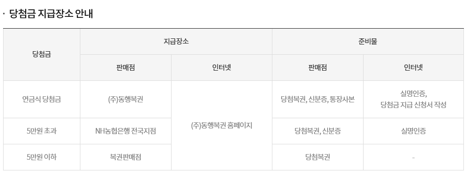 판매점 구매 복권 연금식 당첨금 지급 절차