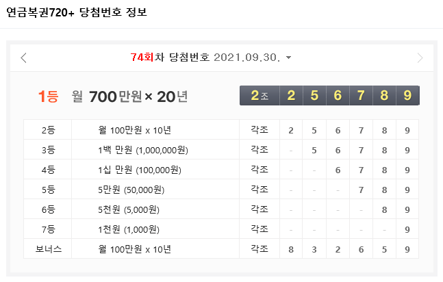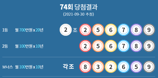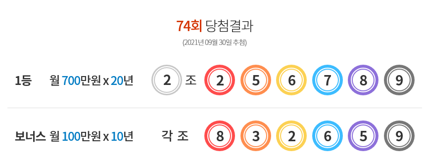 이렇게 74회 연금 복권 당첨 번호 및