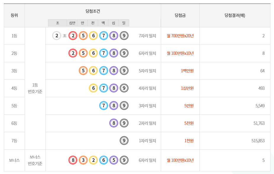 1등 월 700만원 x 20년 2 조 2 5 6 7 8 9