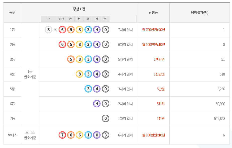 1등 : 3조 6 5 8 3 4 0