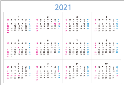 국가가 정한 공휴일 목록입니다.