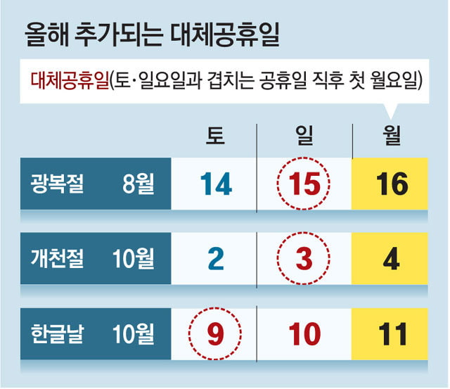 한글날 대체공휴일 적용대상
