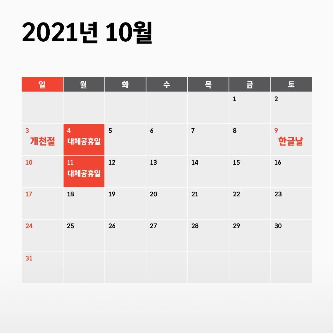 10월 대체공휴일인 10월 11일 휴무에 관한 안내입니다.