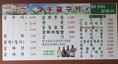 정우굴구이 메뉴 및 가격