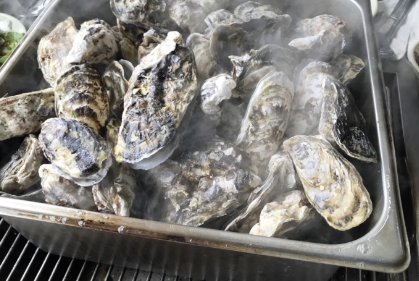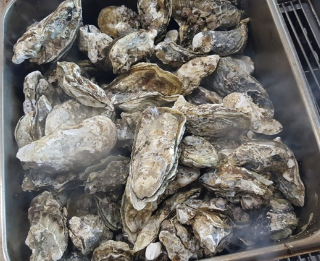 굴이 다 익었다 싶을 때 뚜껑을 열고 각자 목장갑을 끼고 굴을 까먹으면 됩니다.